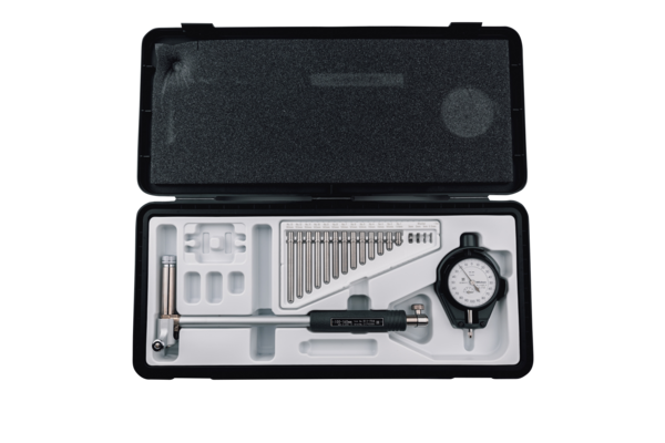 Full Description: This is a short range application Bore Gauge Set that automatically self-centres via a centring bridge and offers you the following benefits: It reduces the influence of heat from the operator’s hand by 50% by making the grip hollow structured, thereby retaining high accuracy measurement. Interchangeable washers (0,5 mm thick) are supplied as standard accessories, so you can enable setting in small steps. Contact points are carbide (>18 mm range), giving you high durability and wear resistance. ; Mass [g]: 480; Range [mm]: 100 – 160; Inch-Metric: Metric; Delivered: Including box, dial indicator, plastic cover for indicator; Digital/Analog: Analog; Graduation: 0.001 mm; Accuracy [?m]: 2 ?m; No. Dial Indicator: 2109AB-10; Number of anvils: 13; Measuring depth: 150 mm; Stroke of contact point: 1.6 mm;Product Link: https://shop.mitutoyo.eu/web/mitutoyo/en/mitutoyo/1305643218700/2-Point%20Inside%20Measuring%20Instrument/$catalogue/mitutoyoData/PR/511-724-20/index.xhtml