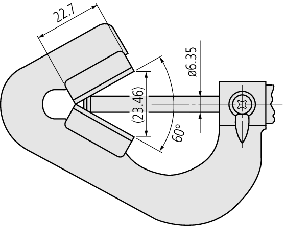 ; Magnetic stand size (LXWXH): 0.5; Mass [g]: 290; Range [mm]: 2.3 – 25; Functions: For 3-flute cutting tools (60?); Inch-Metric: Metric; Delivered: Including box, setting standard, key; Digital/Analog: Analog; Graduation: 0,01 mm; Flatness: 0,6 ?m (spindle), 1,3 ?m (anvil); Max. Permissible Error J MPE: ?4 ?m; Accuracy [?m]: ?4; Measuring spindle: With spindle lock, ?6,35 mm, spindle pitch 0,75 mm; Measuring face: Prism angle 60?/108?; Scale: Thimble and sleeve satin chrome finish, ?18 mm; Setting standard: 167-327 ? 5 mm;Product Link: https://shop.mitutoyo.eu/web/mitutoyo/en/mitutoyo/01.02.01.075/3%20Flute%20V-Anvil%20Micrometer/$catalogue/mitutoyoData/PR/114-204/index.xhtml
