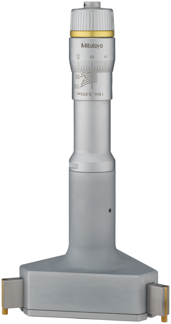 Full Description: A non-digital 3-point Mitutoyo bore micrometer with titanium-coated measuring pins. The 3-point design enables stable measurement through automatic centering. The maximum measuring depth can be increased by 150mm using an optional extension rod if required. Ratchet stop guarantees repeatable measurement. Steel setting rings (optional) are available for accurate setting prior to measurement.; Magnetic stand size (LXWXH): 14; Base size (LxWxH): 17; Mass [g]: 580; Range [mm]: 87 – 100; L1: 105; Inch-Metric: Metric; Measuring method: 3-point; Digital/Analog: Analog; Graduation: 0,005 mm; Max. Permissible Error J MPE: ?4 ?m; Accuracy [?m]: ?3 ?m; Measuring spindle: Spindle pitch 0,5 mm; Measuring face: Titanium coated hardened steel taper: tungsten carbide; Spindle pitch [mm]: ; Depth without extension: 105; Min of L2: 150; Max of L2: 165;Product Link: https://shop.mitutoyo.eu/web/mitutoyo/en/mitutoyo/01.04.06.02.02/3-Point%20Internal%20Micrometer%20Holtest/$catalogue/mitutoyoData/PR/368-173/index.xhtml