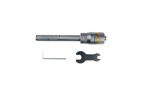 Full Description: A non-digital 3-point Mitutoyo bore micrometer with titanium-coated measuring pins. The 3-point design enables stable measurement through automatic centering. The maximum measuring depth can be increased by 150mm using an optional extension rod if required. Ratchet stop guarantees repeatable measurement. Steel setting rings (optional) are available for accurate setting prior to measurement.; Magnetic stand size (LXWXH): 3.5; Base size (LxWxH): 5.6; Mass [g]: 150; Range [mm]: 12 – 16; L1: 82; Inch-Metric: Metric; Measuring method: 3-point; Digital/Analog: Analog; Graduation: 0,005 mm; Max. Permissible Error J MPE: ?3 ?m; Accuracy [?m]: ?2 ?m; Measuring spindle: Spindle pitch 0,5 mm; Measuring face: Titanium coated hardened steel taper: tungsten carbide; Spindle pitch [mm]: ; Depth without extension: 80; Min of L2: 126; Max of L2: 130;Product Link: https://shop.mitutoyo.eu/web/mitutoyo/en/mitutoyo/01.04.06.02.02/3-Point%20Internal%20Micrometer%20Holtest/$catalogue/mitutoyoData/PR/368-164/index.xhtml
