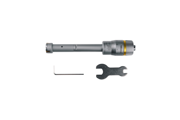 Full Description: A non-digital 3-point Mitutoyo bore micrometer with titanium-coated measuring pins. The 3-point design enables stable measurement through automatic centering. The maximum measuring depth can be increased by 150mm using an optional extension rod if required. Ratchet stop guarantees repeatable measurement. Steel setting rings (optional) are available for accurate setting prior to measurement.; Magnetic stand size (LXWXH): 3.5; Base size (LxWxH): 5.6; Mass [g]: 160; Range [mm]: 16 – 20; L1: 82; Inch-Metric: Metric; Measuring method: 3-point; Digital/Analog: Analog; Graduation: 0,005 mm; Max. Permissible Error J MPE: ?3 ?m; Accuracy [?m]: ?2 ?m; Measuring spindle: Spindle pitch 0,5 mm; Measuring face: Titanium coated hardened steel taper: tungsten carbide; Spindle pitch [mm]: ; Depth without extension: 80; Min of L2: 126; Max of L2: 130;Product Link: https://shop.mitutoyo.eu/web/mitutoyo/en/mitutoyo/01.04.06.02.02/3-Point%20Internal%20Micrometer%20Holtest/$catalogue/mitutoyoData/PR/368-165/index.xhtml