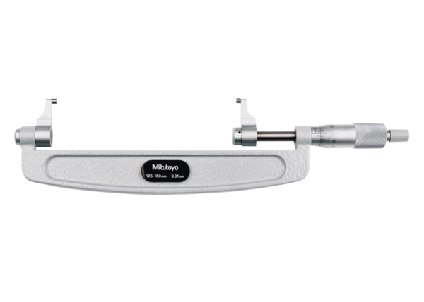 Full Description: This Caliper Jaw Micrometer has been specially designed for measuring in hard-to-reach places.; Stem hole ?: 125; Magnetic stand size (LXWXH): 28.6; Base size (LxWxH): 10.6; Mass [g]: 450; Range [mm]: 125 – 150; Inch-Metric: Metric; Delivered: Including box,?setting standard?(from 25 mm/1″ upward), key; Digital/Analog: Analog; Graduation: 0,01 mm; Flatness: 0,3 ?m; Max. Permissible Error J MPE: ?9 ?m; Parallelism: 5 ?m; Accuracy [?m]: ?9; Measuring spindle: ?8 mm, spindle pitch 0,5 mm; Measuring face: Carbide-tipped, micro-lap finish; Scale: Thimble and sleeve satin chrome finish, ?18 mm;Product Link: https://shop.mitutoyo.eu/web/mitutoyo/en/mitutoyo/01.02.01.046/Caliper%20Jaw%20Micrometer/$catalogue/mitutoyoData/PR/143-106/index.xhtml