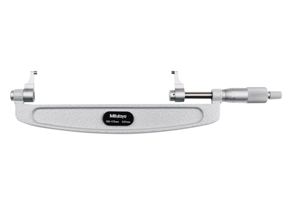 Full Description: This Caliper Jaw Micrometer has been specially designed for measuring in hard-to-reach places.; Stem hole ?: 150; Magnetic stand size (LXWXH): 28.6; Base size (LxWxH): 10.6; Mass [g]: 520; Range [mm]: 150 – 175; Inch-Metric: Metric; Delivered: Including box,?setting standard?(from 25 mm/1″ upward), key; Digital/Analog: Analog; Graduation: 0,01 mm; Flatness: 0,3 ?m; Max. Permissible Error J MPE: ?10 ?m; Parallelism: 5 ?m; Accuracy [?m]: ?10; Measuring spindle: ?8 mm, spindle pitch 0,5 mm; Measuring face: Carbide-tipped, micro-lap finish; Scale: Thimble and sleeve satin chrome finish, ?18 mm;Product Link: https://shop.mitutoyo.eu/web/mitutoyo/en/mitutoyo/01.02.01.046/Caliper%20Jaw%20Micrometer/$catalogue/mitutoyoData/PR/143-107/index.xhtml