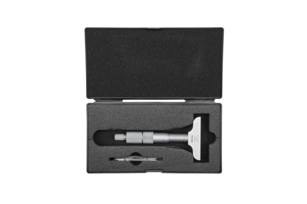 ; Mass [g]: 240; Range [mm]: 0 – 25; Functions: Base 63,5 x 16 mm; Inch-Metric: Metric; Delivered: Including box, spanner no. 301336, 04GAA274, hex-spanner no. 202863; Digital/Analog: Analog; Graduation: 0,01 mm; Measuring face: Hardened, precision ground, micro-lap finish; Flatness base: 1.3 ?m; Flatness rod: 0,3 ?m; Parallelism base/rod: 5 ?m; Number of rods: 1; Zero point errors of rods: ?3 ?m;Product Link: https://shop.mitutoyo.eu/web/mitutoyo/en/mitutoyo/01.030.01/Depth%20Micrometer%2C%20Interchangeable%20Rods/$catalogue/mitutoyoData/PR/129-154/index.xhtml