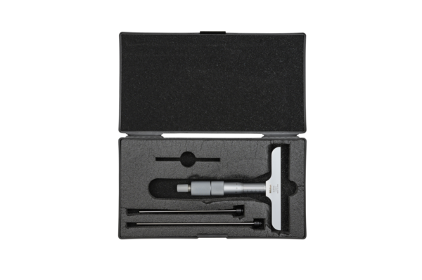 ; Mass [g]: 330; Range [mm]: 0 – 75; Functions: Base 101,6 x 16 mm; Inch-Metric: Metric; Delivered: Including box, spanner no. 301336, 04GAA274, hex-spanner no. 202863; Digital/Analog: Analog; Graduation: 0,01 mm; Measuring face: Hardened, precision ground, micro-lap finish; Flatness base: 2 ?m; Flatness rod: 0,3 ?m; Parallelism base/rod: 6 ?m; Number of rods: 3; Zero point errors of rods: ?3 ?m;Product Link: https://shop.mitutoyo.eu/web/mitutoyo/en/mitutoyo/01.030.01/Depth%20Micrometer%2C%20Interchangeable%20Rods/$catalogue/mitutoyoData/PR/129-114/index.xhtml