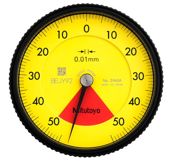 Full Description: This is a back plunger type dial indicator with bezel ? 57 mm.; Stem hole ?: 8 mm; Mass [g]: 115; Range [mm]: 1; Battery life: 12; Type: EN ISO Standard; Functions: 3; Inch-Metric: Metric; Delivered: With certificate of inspection; Range per rev.: 1.27 mm; Balanced dial: Yes; EN ISO 463: Errors of indication over a range of (see below); MPE measuring range: 15; Contact point: Carbide tipped, thread: M 2.5 x 0.45 mm; Dial reading: 50-0-50; Digital/Analog: Analog; fges: 15; Graduation: 0.01; H MPE (Hysteresis): 3.5; Measuring force: 0.4-1.4 N; Range [mue]: 15; R MPE (Repeatability): 3; MPE any 1/10 revolution: 7; Shockproof: Yes; Error of indication one revolution: Yes; Plunger Stroke: 4;Product Link: https://shop.mitutoyo.eu/web/mitutoyo/en/mitutoyo/1300889435140/Dial%20Gauge%2C%20Lug%20Back%2C%20ISO%20Type/$catalogue/mitutoyoData/PR/2960A/index.xhtml