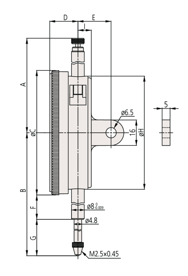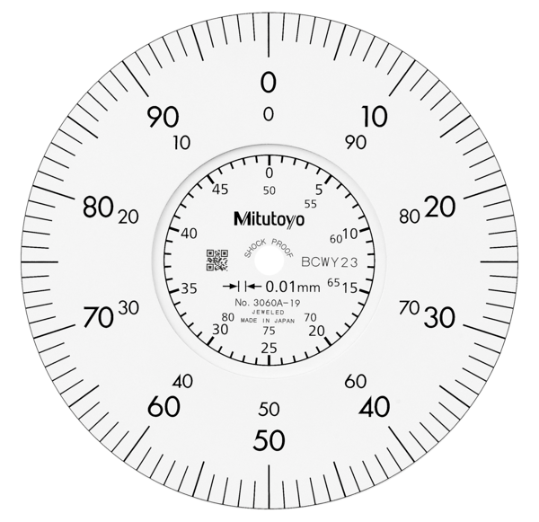 Full Description: A Mitutoyo shockproof, multi-revolution dial indicator suited to general measurement applications in a vertical orientation. The jewelled movement provides lowest friction and stiction for smooth and precise operation.; Stem hole ?: 8 mm; Magnetic stand size (LXWXH): 9; Base size (LxWxH): 202.3; Clamping force (vertical): 73.9; Mass [g]: 314; Range [mm]: 80; Battery life: 50; Type: EN ISO Standard; Functions: 9; Inch-Metric: Metric; Delivered: with certificate of inspection; Range per rev.: 1 mm; EN ISO 463: Errors of indication over a range of (see below); MPE measuring range: 45; Contact point: Carbide tipped, thread: M 2.5 x 0.45 mm; Dial reading: ?0-100; fges: 60; Graduation: 0.01; H MPE (Hysteresis): 9; Measuring force: 0,4-3; Range [mue]: 45; R MPE (Repeatability): 3; MPE any 1 revolution: 15; MPE any 1/2 revolution: 14; MPE any 1/10 revolution: 10; Shockproof: Yes; Jeweled bearing: Yes; Continuous dial: Yes; Coaxial revolution counter: Yes;Product Link: https://shop.mitutoyo.eu/web/mitutoyo/en/mitutoyo/1300892940906/Dial%20Gauge%2C%20Lug%20Back%2C%20ISO%20Type/$catalogue/mitutoyoData/PR/3060A-19/index.xhtml
