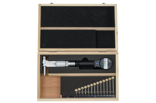 ; Mass [g]: 570; Range [mm]: 100 – 160; Inch-Metric: Metric; Digital/Analog: Digital; Graduation: 0.001; Accuracy [?m]: 0,003 mm (excluding quantizing error); Number of anvils: 13;Product Link: https://shop.mitutoyo.eu/web/mitutoyo/en/mitutoyo/1306223161379/Digital%20ABS%20Bore%20Gauge/$catalogue/mitutoyoData/PR/511-502/index.xhtml
