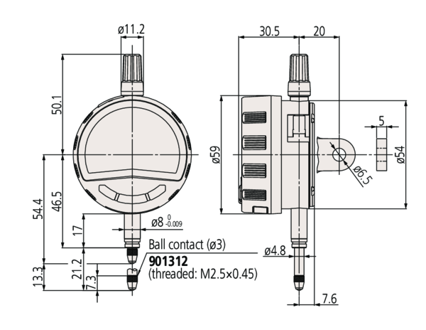 ; Mass [g]: 170; Range [mm]: 12.7; Power supply report: 1 battery CR2032; Battery life: Approx. 2700 hours (continuous use); Type: EN ISO Standard; Inch-Metric: Metric; Delivered: Including CR2032 battery, battery lid opener, weight, certificate of inspection; Contact point: Carbide ball, thread: M2.5×0.45; Digital/Analog: Digital; H MPE (Hysteresis): 0.002 mm; R MPE (Repeatability): 0.002 mm; Stem ?: 8 mm; Max. Permissible Error E MPE: 0.003 mm; Digital step: 0.0005 mm/0.001 mm/0,01mm; Display: LCD, character height 11 mm, 330? rotatable; Low voltage alarm: Low voltage, setting errors, sensor error, display overflow a.s.o.; Max. response speed [mm/s]: Unlimited; Protection: IP42; Digimatic data output: Yes; Inch/Metric switchable: No; Max. Permissible Error E MPE (Total Range): 0.003 mm; Measuring force MPL: 0.4-0.7 N; Measurement frequency (MAX/MIN/RANGE): 50 times/s; Digital Scale: Electrostatic capacitance type absolute linear encoder; Analog bar resolution switchable: Yes; Digital step switchable: Yes; Digimatic S1 Bidirectional interface: Yes;Product Link: https://shop.mitutoyo.eu/web/mitutoyo/en/mitutoyo/1300442458734/Digital%20Indicator%20ID-C/$catalogue/mitutoyoData/PR/543-705/index.xhtml