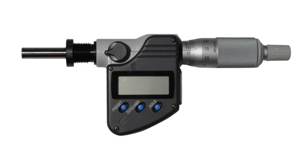 ; Stem hole ?: w/ clamp nut; Mass [g]: 230; Range [mm]: 0 – 25; Remarks: Threaded stem; Power supply report: 1 battery SR-44; Battery life: Approx. 2,4 years; Inch-Metric: Metric; Delivered: With battery SR-44; Digital/Analog: Digital; Max. Permissible Error J MPE: ?2 ?m; Accuracy [?m]: ?2; Measuring spindle: With spindle lock, ? 6,35 mm; Measuring face: Carbide tipped; Fixture thickness for clamp nut: 11.5; Spindle end: Flat; Stem ?: M12 x 1; Spindle pitch [mm]: 0,5; Digital step: 0,001 mm; Display: LCD, character Height 7.5 mm; Low voltage alarm: Yes;Product Link: https://shop.mitutoyo.eu/web/mitutoyo/en/mitutoyo/Digital%20Micrometer%20Head%20with%2012%20mm%20Stem/Digital%20Micrometer%20Head%2C%20IP65/$catalogue/mitutoyoData/PR/350-272-30/index.xhtml
