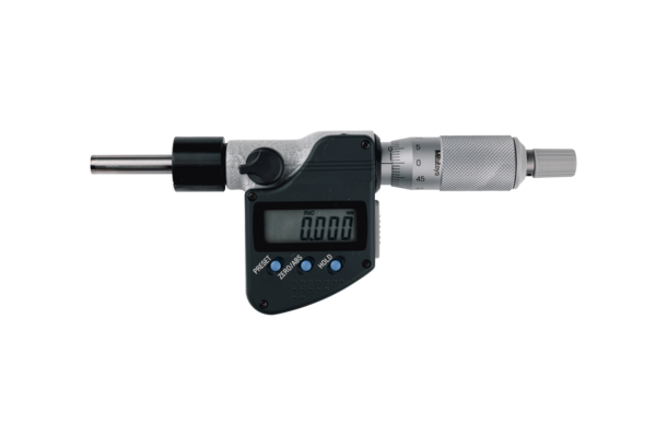 ; Stem hole ?: Plain; Mass [g]: 230; Range [mm]: 0 – 25; Remarks: IP65; Power supply report: 1 battery SR-44; Battery life: Approx. 2,4 years; Inch-Metric: Metric; Delivered: With battery SR-44; Digital/Analog: Digital; Max. Permissible Error J MPE: ?2 ?m; Accuracy [?m]: ?2; Measuring spindle: With spindle lock, ? 6,35 mm; Measuring face: Carbide tipped; Spindle end: Flat; Stem ?: 12 /18 mm; Spindle pitch [mm]: 0,5; Digital step: 0,001 mm; Display: LCD, character Height 7.5 mm; Low voltage alarm: Yes;Product Link: https://shop.mitutoyo.eu/web/mitutoyo/en/mitutoyo/Digital%20Micrometer%20Head%20with%2012%20mm%20Stem/Digital%20Micrometer%20Head%2C%20IP65/$catalogue/mitutoyoData/PR/350-271-30/index.xhtml