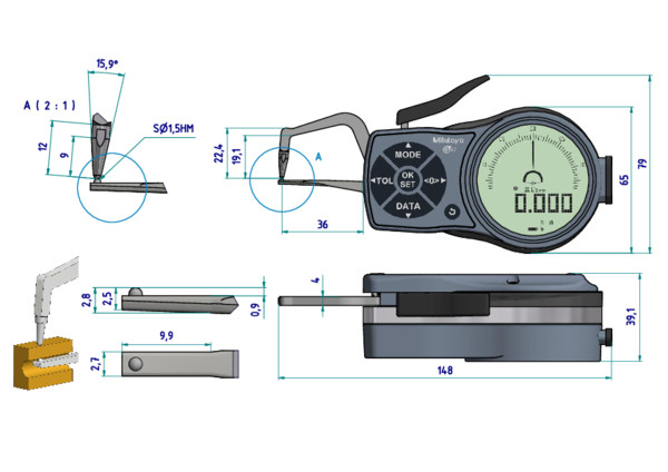 Caliper Gauges, Dial Tension Gauges, External Digimatic Caliper Gauges, Indicators and Caliper Gauges, Mitutoyo, Series 209, Small Tool Instruments and Data Management, Thickness Gauges