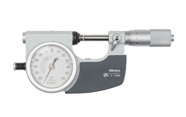 Full Description: This is an Indicating Micrometer with a dial comparator that enables you to take fast and highly accurate measurements. It offers you the following benefits: It is easy to use when operated one-handed due to retractable anvil. Protection level IP54 and large and easy to read characters on the dial plate Large dial comparator for easy reading (+/- 0,06 mm) Tolerance markers for GO/NG measurements 8 mm spindle diameter gives you easy positioning and highly accurate measurements. ; Stem hole ?: 31.5; Mass [g]: 520; Range [mm]: 0 – 25; Inch-Metric: Metric; Delivered: Including box, key; Digital/Analog: Analog; Graduation: 0,001 mm; R MPE (Repeatability): 0.4 ?m; Flatness: 0,3 ?m; Parallelism: 0,6 ?m; Measuring spindle: With spindle lock, ?8 mm, spindle pitch 0,5 mm; Measuring face: Carbide-tipped, micro-lap finish, ?8 mm; Scale: Thimble and sleeve satin chrome finish, ?21 mm; Spindle feed error [?m]: 3; Anvil retracting stroke: 2 mm; Interchangeable rod [mm]: 25; Operating button: Left; Accuracy dial comparator: 1 ?m; Indicating range: ?0.06 mm;Product Link: https://shop.mitutoyo.eu/web/mitutoyo/en/mitutoyo/01.02.01.085/Indicating%20Micrometer%20with%20Button%20Left/$catalogue/mitutoyoData/PR/510-141/index.xhtml