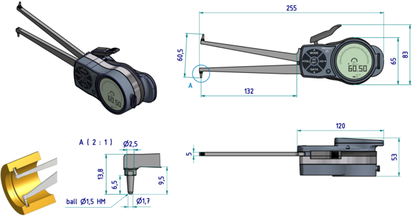 30-60mm, 0,01mm, Carbide Ball D=1,5mm