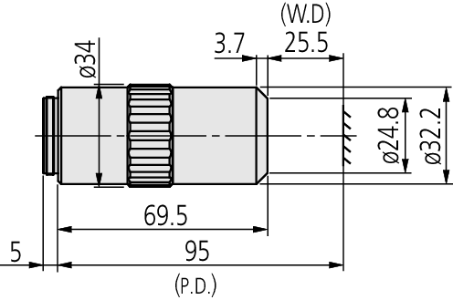 Full Description: Features High Resolution Infinity Corrected Breight Field Inspection High Quality Plan Apochromat Flat Image Surface over Entire Field of View ; Thread Arm/Base: 1.3; Clamping force (vertical): 40; Mass [g]: 285; Remarks: pupil diameter 16.8; Functions: M Plan Apo HR for Bright Field Observation Compatible with microscope types VMU / FS-70 / MF-U / Hyper MF-U Note: These objectives offer extra-high resolving power.; Model: M Plan Apo HR 5X; Magnification: 5x; W.D.: 27; D.F.: 6.2; Dimensions [mm]: 32.2-34; Finite/Infinite: Infinite; Image Field: visible: 30 mm; N.A.: 0.21; Specifications: MI924; Working distance: In Air: 25.5 mm; Tube lens: 200; Focal length: 40; P.D.: 95; FOV 1: ?4.8; FOV 2: 0,96 x 1,28; Corrected Wave Length: 436-656; Type of Lens: c: HR;Product Link: https://shop.mitutoyo.eu/web/mitutoyo/en/mitutoyo/05.04.02/M%20Plan%20APO%20HR%205X/$catalogue/mitutoyoData/PR/378-787-16/index.xhtml