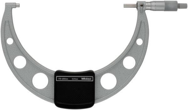 Full Description: A basic, cost effective, non-digital Mitutoyo micrometer with a ratchet stop to guarantee repeatable measurement.; Stem hole ?: 208.8; Magnetic stand size (LXWXH): 6.35; Base size (LxWxH): 19; Mass [g]: 920; Range [mm]: 175-200; Functions: Graduation 0,01 mm; Inch-Metric: Metric; Delivered: Including box,?setting standard?(from 25 mm upward), key, certificate of inspection (0-50 mm range); Digital/Analog: Analog; Graduation: 0,01 mm; Measuring force: 5 – 15 N; Flatness: 0,6 ?m; Max. Permissible Error J MPE: ?4 ?m; Parallelism: 4 ?m; Accuracy [?m]: ?4; Min of Measuring force: 5; Max of Measuring force: 10; Measuring spindle: With spindle lock, ?6,35 mm (?300 mm) ? 8 mm (>300 mm) , spindle pitch 0,5 mm; Measuring face: Carbide-tipped, micro-lap finish; Scale: Thimble and sleeve satin chrome finish, ?18 mm (?300 mm), ?21 mm (>300 mm);Product Link: https://shop.mitutoyo.eu/web/mitutoyo/en/mitutoyo/01.02.01.031/Outside%20Micrometer%20Economy%20Design/$catalogue/mitutoyoData/PR/103-144-10/index.xhtml