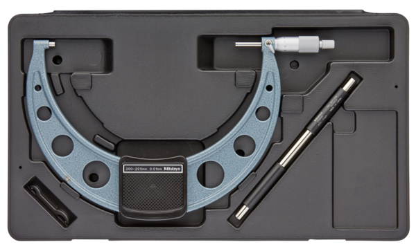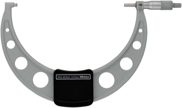 Full Description: A Mitutoyo basic, cost effective, non-digital micrometer with a ratchet stop to guarantee repeatable measurement.; Stem hole ?: 234.2; Magnetic stand size (LXWXH): 6.35; Base size (LxWxH): 18; Mass [g]: 1080; Range [mm]: 200-225; Functions: Graduation 0,01 mm; Inch-Metric: Metric; Delivered: Including box,?setting standard?(from 25 mm upward), key, certificate of inspection (0-50 mm range); Digital/Analog: Analog; Graduation: 0,01 mm; Measuring force: 5 – 15 N; Flatness: 0,6 ?m; Max. Permissible Error J MPE: ?4 ?m; Parallelism: 4 ?m; Accuracy [?m]: ?4; Min of Measuring force: 5; Max of Measuring force: 10; Measuring spindle: With spindle lock, ?6,35 mm (?300 mm) ? 8 mm (>300 mm) , spindle pitch 0,5 mm; Measuring face: Carbide-tipped, micro-lap finish; Scale: Thimble and sleeve satin chrome finish, ?18 mm (?300 mm), ?21 mm (>300 mm);Product Link: https://shop.mitutoyo.eu/web/mitutoyo/en/mitutoyo/01.02.01.031/Outside%20Micrometer%20Economy%20Design/$catalogue/mitutoyoData/PR/103-145-10/index.xhtml