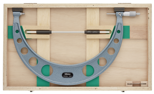Full Description: A Mitutoyo basic, cost effective, non-digital micrometer with a ratchet stop to guarantee repeatable measurement.; Stem hole ?: 378; Magnetic stand size (LXWXH): 8; Base size (LxWxH): 28; Mass [g]: 2155; Range [mm]: 325-350; Functions: Graduation 0,01 mm; Inch-Metric: Metric; Delivered: Including box,?setting standard?(from 25 mm upward), key, certificate of inspection (0-50 mm range); Digital/Analog: Analog; Graduation: 0,01 mm; Measuring force: 5 – 15 N; Flatness: 1 ?m; Max. Permissible Error J MPE: ?6 ?m; Parallelism: 5 ?m; Accuracy [?m]: ?6; Min of Measuring force: 10; Max of Measuring force: 15; Measuring spindle: With spindle lock, ?6,35 mm (?300 mm) ? 8 mm (>300 mm) , spindle pitch 0,5 mm; Measuring face: Carbide-tipped, micro-lap finish; Scale: Thimble and sleeve satin chrome finish, ?18 mm (?300 mm), ?21 mm (>300 mm);Product Link: https://shop.mitutoyo.eu/web/mitutoyo/en/mitutoyo/01.02.01.031/Outside%20Micrometer%20Economy%20Design/$catalogue/mitutoyoData/PR/103-150/index.xhtml