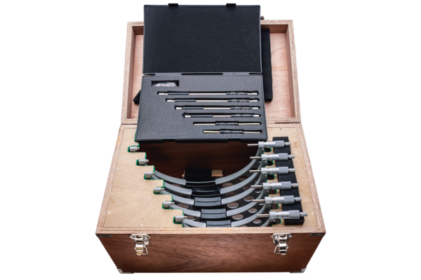 Full Description: Lightweight workshop design with baked-enamel-finished frame. Equipped with Ratchet Stop for constant measuring force. ; Mass [g]: 7695; Range [mm]: 150 – 300; Functions: Micrometer set; Inch-Metric: Metric; Delivered: Including box,?setting standard?(from 25 mm upward), key, certificate of inspection (0-50 mm range); Digital/Analog: Analog; Graduation: 0,01 mm; Measuring force: 5 – 10 N; Measuring spindle: With spindle lock, ?6,35 mm (?300 mm) ? 8 mm (>300 mm) , spindle pitch 0,5 mm; Measuring face: Carbide-tipped, micro-lap finish; Scale: Thimble and sleeve satin chrome finish, ?18 mm (?300 mm), ?21 mm (>300 mm); Content of Set: 103-143-10, 103-144-10, 103-145-10, 103-146-10, 103-147-10, 103-148-10, 6 setting standards;Product Link: https://shop.mitutoyo.eu/web/mitutoyo/en/mitutoyo/01.02.01.032/Outside%20Micrometer%20Economy%20Design%20Set/$catalogue/mitutoyoData/PR/103-915-10/index.xhtml