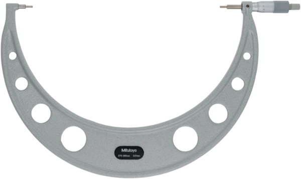 Full Description: This Spline Micrometer makes it easy for you to measure grooves and shaped parts. It offers you the following benefits: Stepped measuring surfaces. Suitable for measuring grooves, splined shafts, recesses, shaped parts, etc. ; Stem hole ?: 333.5; Magnetic stand size (LXWXH): 181; Base size (LxWxH): 18; Mass [g]: 1975; Range [mm]: 275 – 300; Inch-Metric: Metric; Delivered: Including box, setting standard (from 25 mm upward), key; Digital/Analog: Analog; Graduation: 0,01 mm; Flatness: 0,3 ?m; Max. Permissible Error J MPE: ?6 ?m; Parallelism: 5 ?m; Accuracy [?m]: ?6; Measuring spindle: With spindle lock, ?6,35 mm, spindle pitch 0,5 mm; Measuring face: Carbide-tipped, micro-lap finish, stepped; Scale: Thimble and sleeve satin chrome finish, ?18 mm; Anvil / Spindle: Type A, D=3 mm;Product Link: https://shop.mitutoyo.eu/web/mitutoyo/en/mitutoyo/01.02.01.068/Spline%20Micrometer/$catalogue/mitutoyoData/PR/111-126/index.xhtml