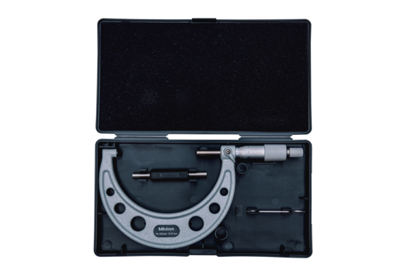 Full Description: This Tube Micrometer allows you to measure curved surfaces such as the wall thickness of tubes, bearings and rings.; Magnetic stand size (LXWXH): 18; Mass [g]: 375; Range [mm]: 75 – 100; Functions: Model with spherical anvil and spindle face; Inch-Metric: Metric; Delivered: Including box, setting standard (from 25 mm upward), key; Digital/Analog: Analog; Graduation: 0,01 mm; Measuring force: 5 – 10 N; Max. Permissible Error J MPE: ?4 ?m; Accuracy [?m]: ?4; Min of Measuring force: 5; Max of Measuring force: 10; Measuring spindle: With spindle lock, ?6,35 mm, spindle pitch 0,5 mm; Measuring face: Spindle and anvil: carbide-tipped, micro-lap finish (115-1xx, 115-2xx) spindle: carbide-tipped, micro-lap finish anvil: hardened steel (115-3xx); Scale: Thimble and sleeve satin chrome finish, ?18 mm; Anvil / Spindle: Type F, spherical anvil and spindle SR=4 mm;Product Link: https://shop.mitutoyo.eu/web/mitutoyo/en/mitutoyo/01.02.01.070/Tube%20Micrometer%2C%20Spherical%20Anvil/Spindle/$catalogue/mitutoyoData/PR/115-218/index.xhtml