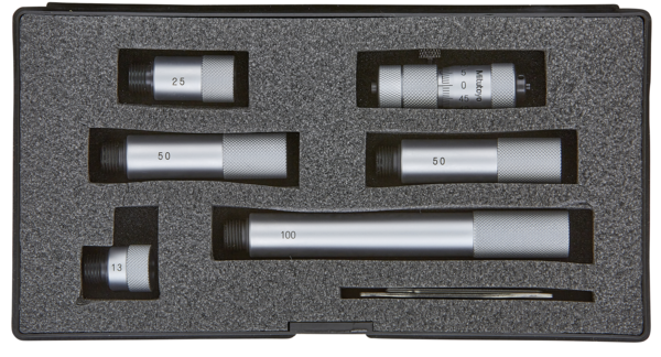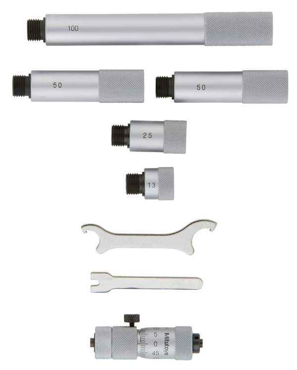Full Description: This is an extension rod type inside micrometer that offers you the following benefits: Interchangeable extensions with cylindrical gage rods are spring-mounted in protective sleeves so you can extend the measuring range. Carbide measuring faces are available. ; Mass [g]: 305; Range [mm]: 50 – 300; Functions: With carbide measuring surface; Inch-Metric: Metric; Measuring method: 2-point; Delivered: Including box, key; Digital/Analog: Analog; Graduation: 0.01 mm; Accuracy [?m]: ?(3+n+L/50) ?m n = Number of rod, L = Maximum measuring length (mm); Measuring spindle: Spindle pitch 0,5 mm; Measuring face: Carbide; Limit of error: ?(3+number of rods+max. measurement length/50) ?m; Spindle feed error [?m]: 3; Measuring span: 13 mm; Extension rods: 5 (13, 25, 50 (2 pcs.), 100 mm);Product Link: https://shop.mitutoyo.eu/web/mitutoyo/en/mitutoyo/Tubular%20Inside%20Micrometer%20with%20Extensions/Tubular%20Inside%20Micrometer%20Carbide%20Tipped/$catalogue/mitutoyoData/PR/137-207/index.xhtml