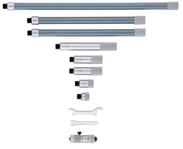 Full Description: This is an extension rod type inside micrometer that offers you the following benefits: Interchangeable extensions with cylindrical gage rods are spring-mounted in protective sleeves so you can extend the measuring range. Carbide measuring faces are available. ; Mass [g]: 845; Range [mm]: 50 – 1,000; Functions: With carbide measuring surface; Inch-Metric: Metric; Measuring method: 2-point; Delivered: Including box, key; Digital/Analog: Analog; Graduation: 0.01 mm; Accuracy [?m]: ?(3+n+L/50) ?m n = Number of rod, L = Maximum measuring length (mm); Measuring spindle: Spindle pitch 0,5 mm; Measuring face: Carbide; Limit of error: ?(3+number of rods+max. measurement length/50) ?m; Spindle feed error [?m]: 3; Measuring span: 13 mm; Extension rods: 8 (13, 25, 50 (2 pcs.), 100, 200 (2 pcs.), 300 mm);Product Link: https://shop.mitutoyo.eu/web/mitutoyo/en/mitutoyo/Tubular%20Inside%20Micrometer%20with%20Extensions/Tubular%20Inside%20Micrometer%20Carbide%20Tipped/$catalogue/mitutoyoData/PR/137-209/index.xhtml