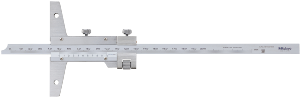 Full Description: A Mitutoyo vernier depth gauge with a 100mm base and fine adjustment. Hardened stainless steel construction with easy-to-read, satin-chromed scales.; Stem hole ?: 310; Mass [g]: 300; Range [mm]: 0 – 200; Functions: With fine adjustment; Inch-Metric: Metric; Digital/Analog: Analog; Graduation: 0,02 mm; Accuracy [?m]: Refer to the list of specifications; Base (W x T): 100 x 6.5 mm; Max. Permissible Error E MPE: ?0,03 mm;Product Link: https://shop.mitutoyo.eu/web/mitutoyo/en/mitutoyo/01.030.03/Vernier%20Depth%20Gauge/$catalogue/mitutoyoData/PR/527-102/index.xhtml